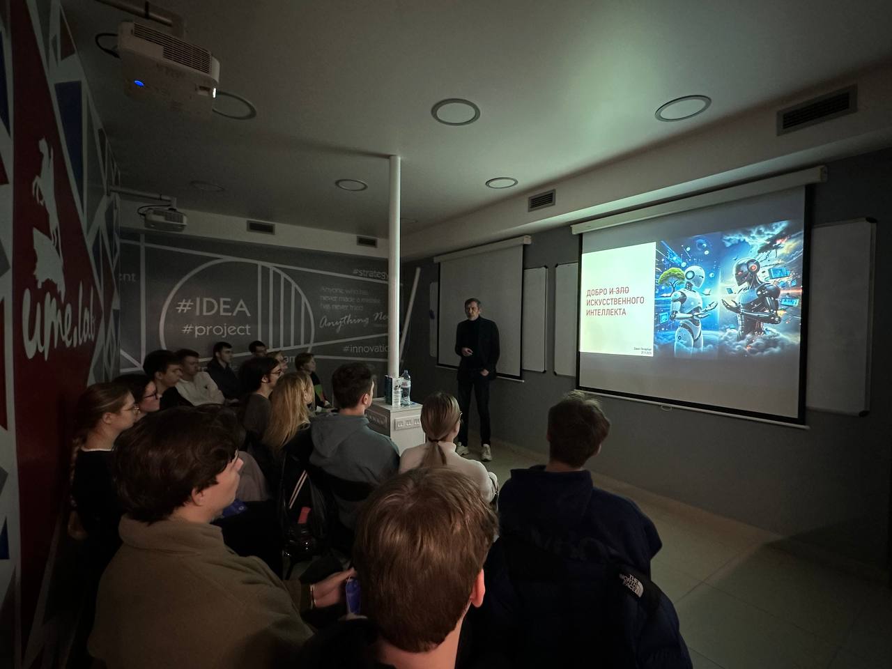 • Дебаты на тему «Искусственный интеллект — это добро или зло» прошли на площадке проектного офиса UME.LAB. Дискуссию вел директор Института управления и информационных технологий Евгений Щипанов. В ходе мероприятия участники обменялись мнениями, рассматривали различные аспекты и последствия внедрения ИИ, демонстрируя разные точки зрения на его влияние на общество и будущее.