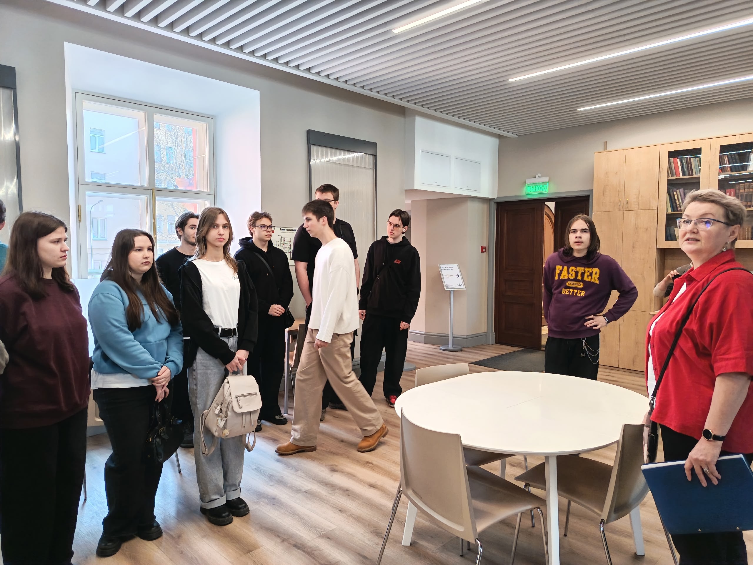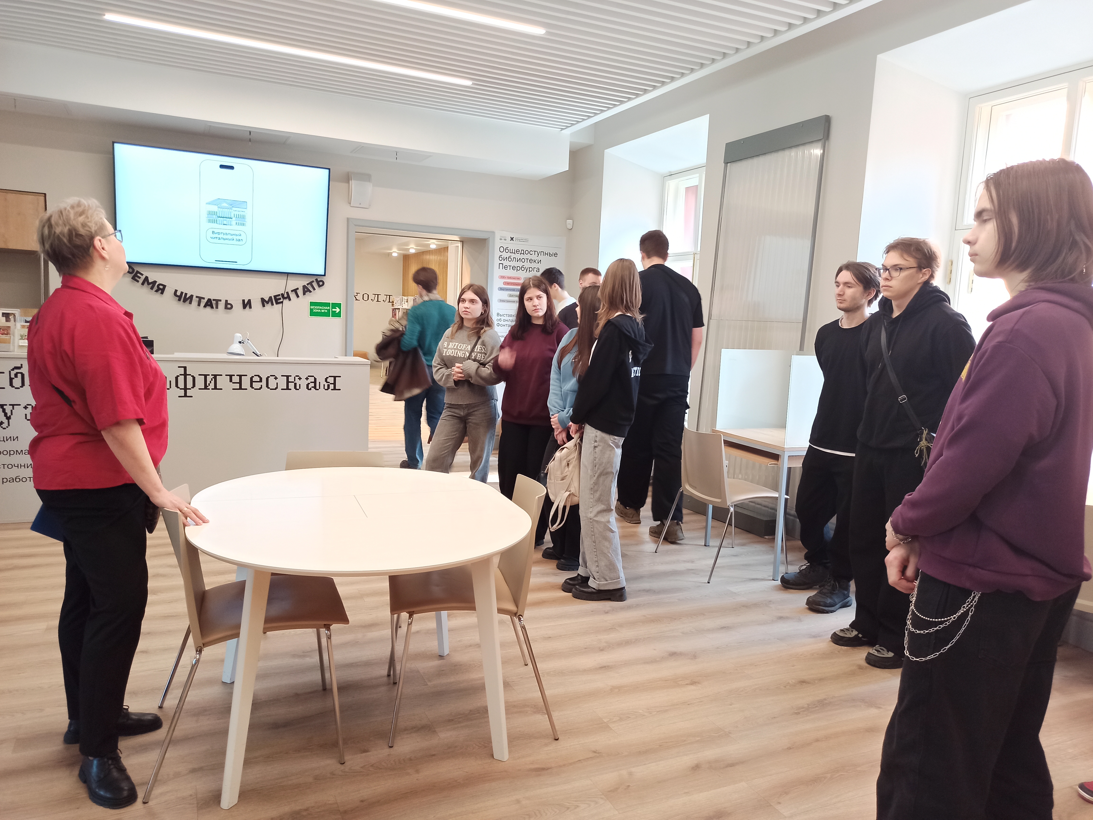 Во время экскурсии студенты увидели, как классические читальные залы сочетаются с современными пространствами для общения, проектной работы и культурных начинаний. Особый интерес вызвал рассказ о фондовом богатстве библиотеки, ее электронных ресурсах, возможностях для самостоятельных исследований и участия в культурных и просветительских программах, реализуемых на базе библиотеки и в рамках городской библиотечной сети.
