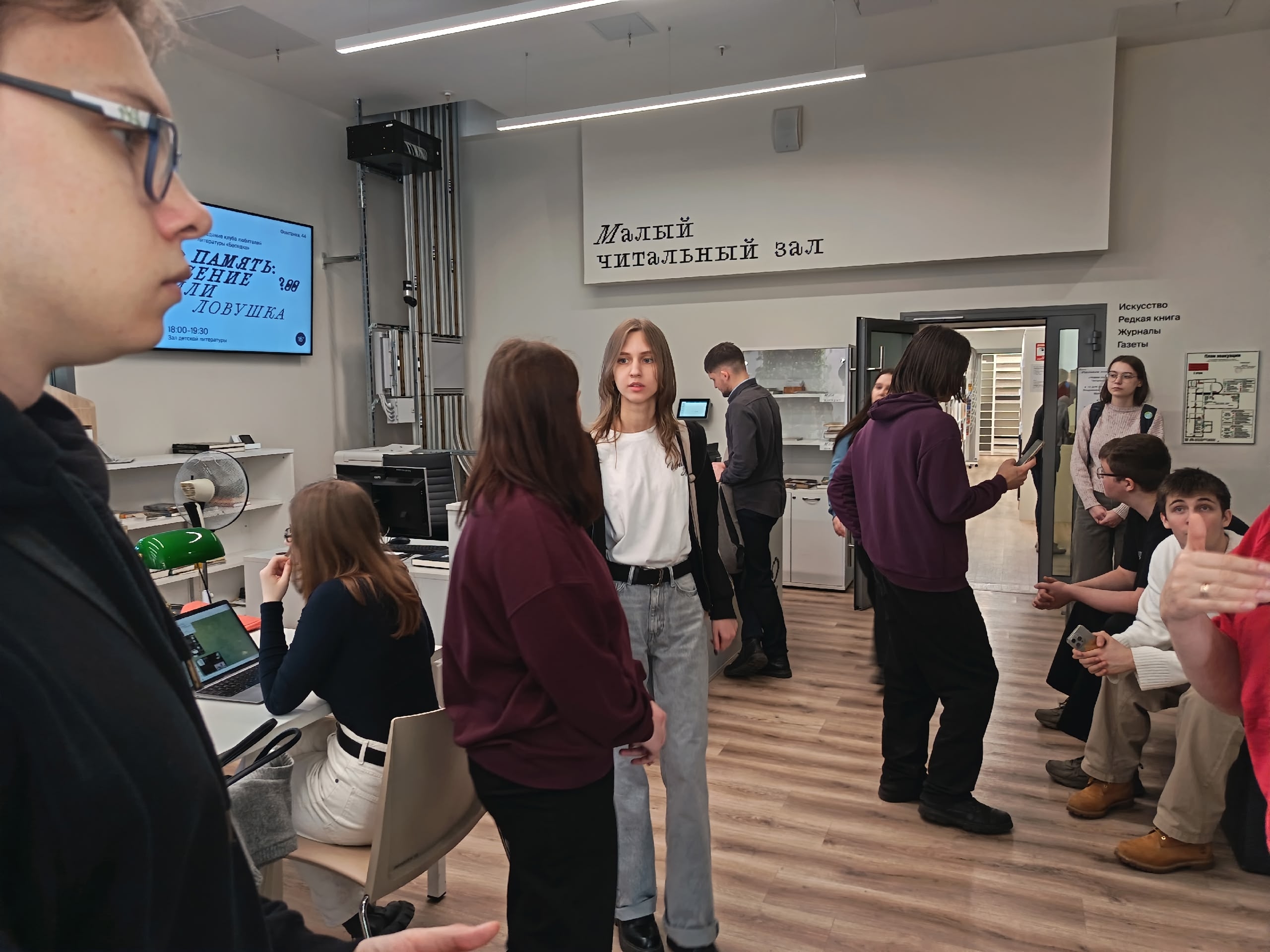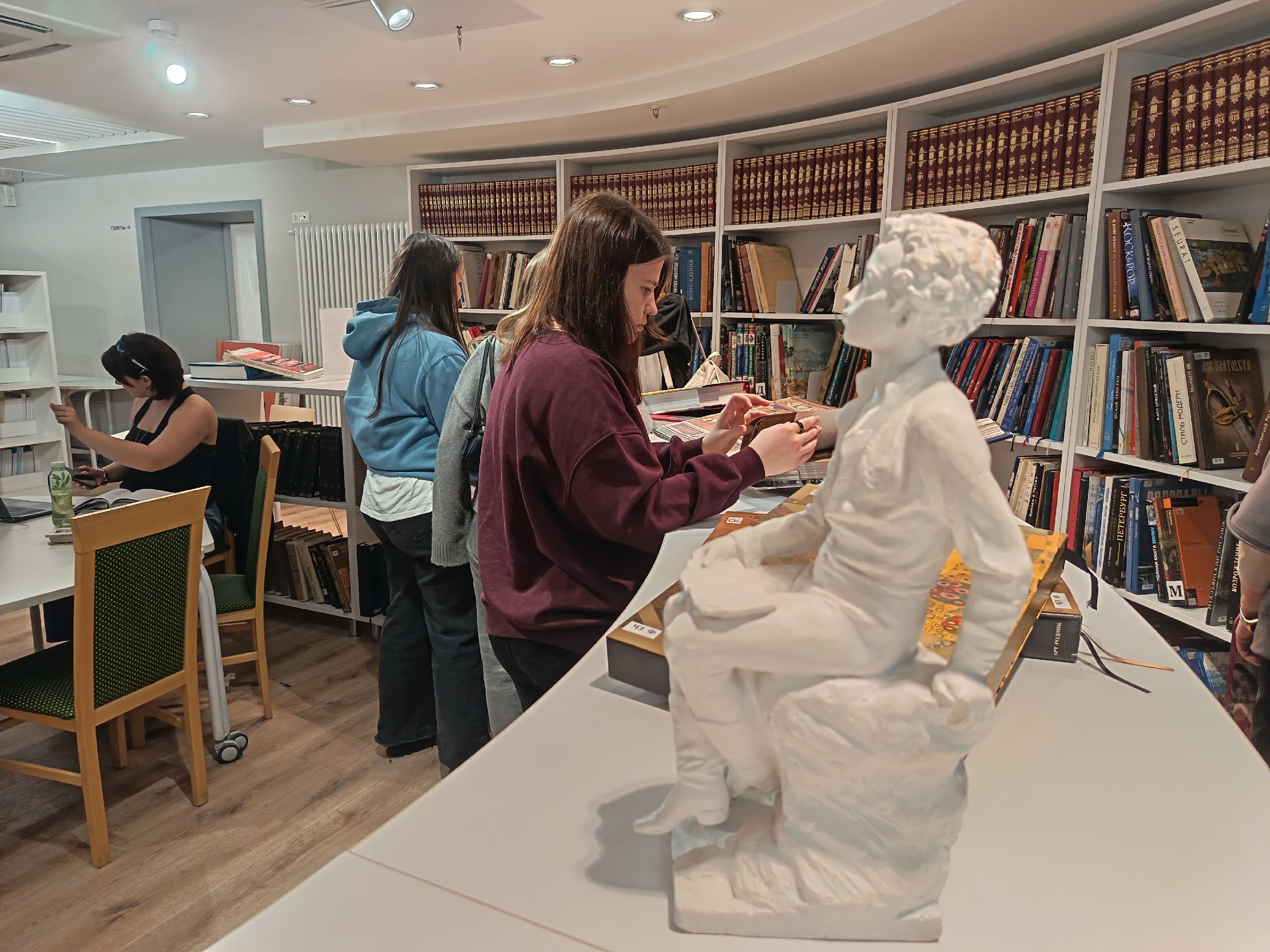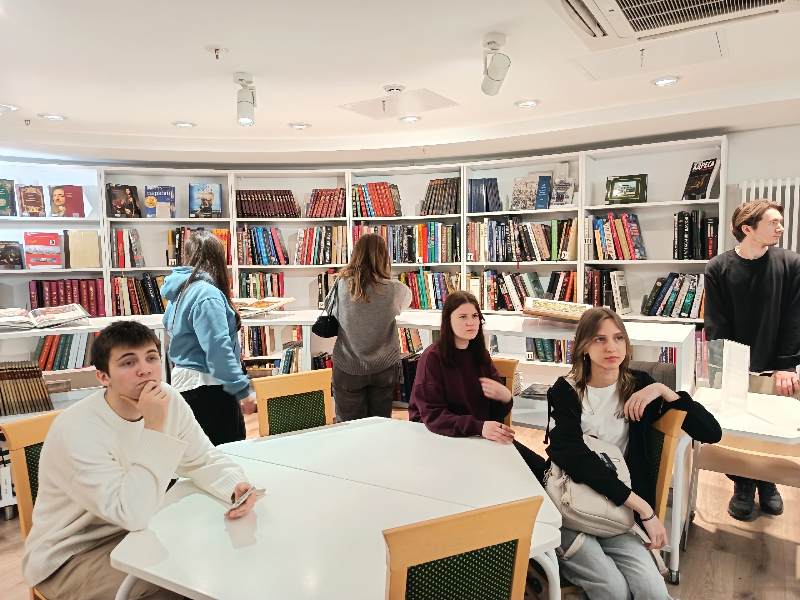 После завершения экскурсионной части студенты остались в библиотеке, чтобы самостоятельно осмотреть ее пространства, поближе познакомиться с книжными полками и новыми изданиями, выбрать литературу для учебы и личного чтения. Это живое продолжение встречи показало, что «Маяковка» стала для студентов не только объектом экскурсии, но и привлекательным местом для дальнейшей самостоятельной работы и чтения.